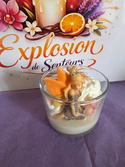 Bougie gourmande avec cire 100% végétale. Chaque bougie est unique, fabriquée à la main. La cire utilisée est 100% végétale, VEGAN, sans OGM. Les parfums sont français, viennent de Grasse et sont garantis sans CMR (cancérogène, mutagène, reprotoxique), non toxique. Ingrédients (seulement des bonnes choses) : Cire de soja, parfum de Grasse, colorant naturel. Conseil d'utilisation : coupez la mèche à environ 1cm, vérifiez à ce qu'elle soit toujours centrée, laissez-là se consumer 2 heures au maximum. Photo non contractuelle. Toutes les bougies sont créés à la demande, Informations : Tenir hors de portée des enfants. En cas de consultation d'un médecin, garder à disposition le récipient ou l'étiquette. Produit non comestible.