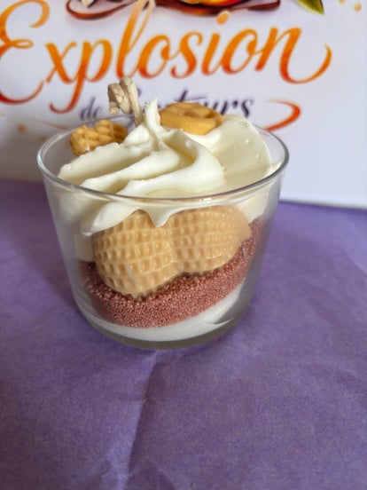 Chaque bougie est unique et minutieusement créeé avec passion permettant ainsi de créer des designs uniques qui évoquent la gourmandise. Fabriquées à partir de cire végétale et parfum de grasse