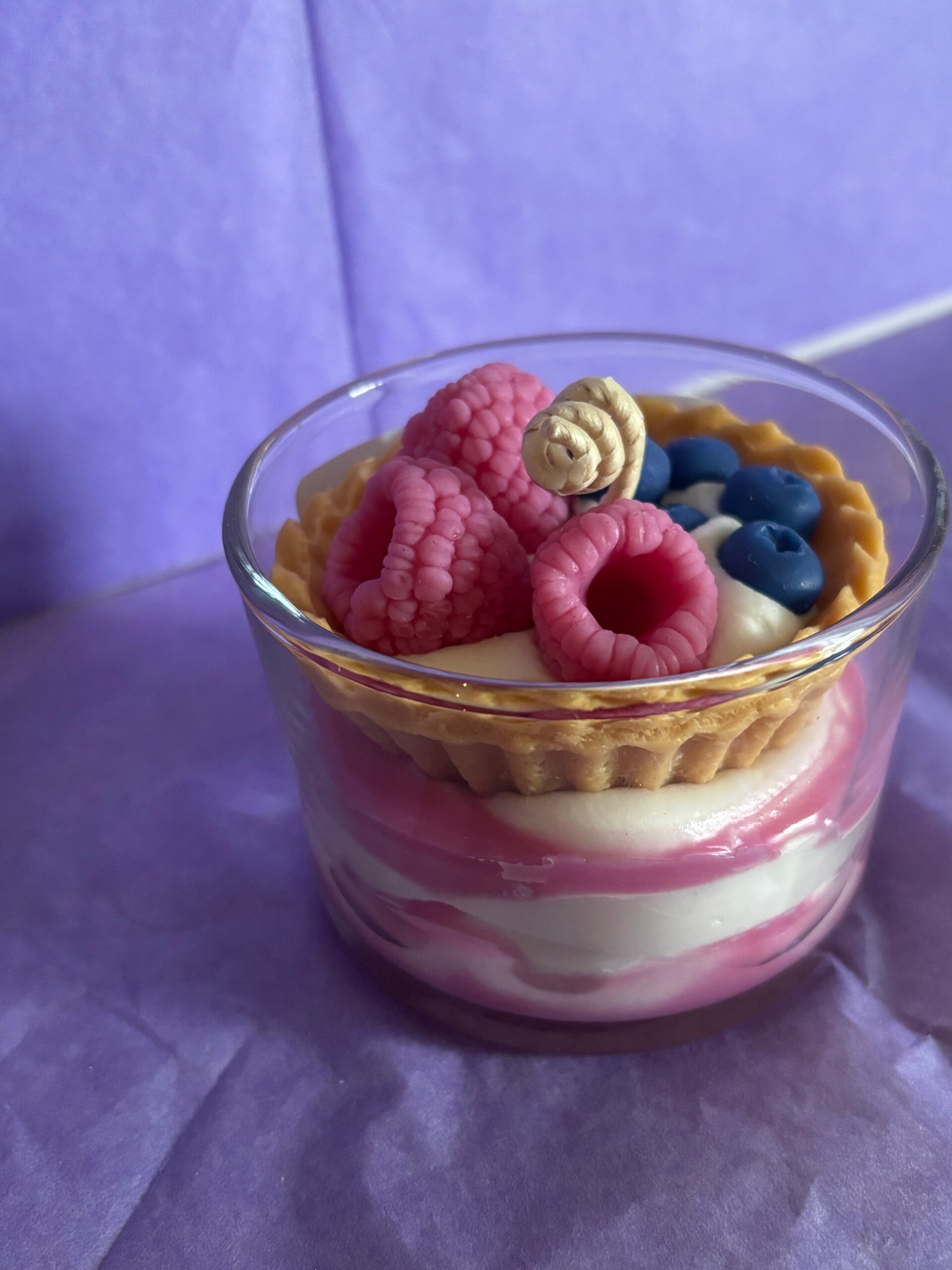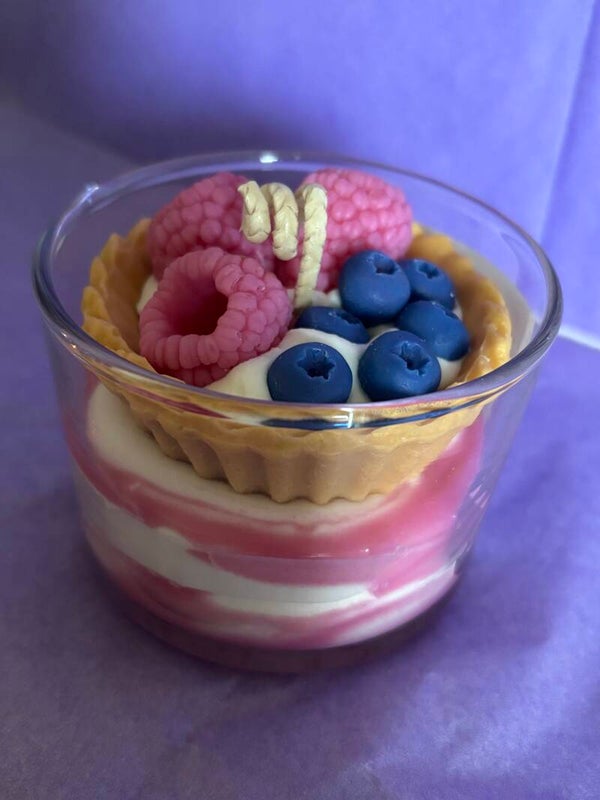 Bougie gourmande avec cire 100% végétale. Chaque bougie est unique, fabriquée à la main. La cire utilisée est 100% végétale, VEGAN, sans OGM. Les parfums sont français, viennent de Grasse et sont garantis sans CMR (cancérogène, mutagène, reprotoxique), non toxique. Ingrédients (seulement des bonnes choses) : Cire de soja, parfum de Grasse, colorant naturel. Conseil d'utilisation : coupez la mèche à environ 1cm, vérifiez à ce qu'elle soit toujours centrée, laissez-là se consumer 2 heures au maximum. Photo non contractuelle. Toutes les bougies sont créés à la demande, Informations : Tenir hors de portée des enfants. En cas de consultation d'un médecin, garder à disposition le récipient ou l'étiquette. Produit non comestible.