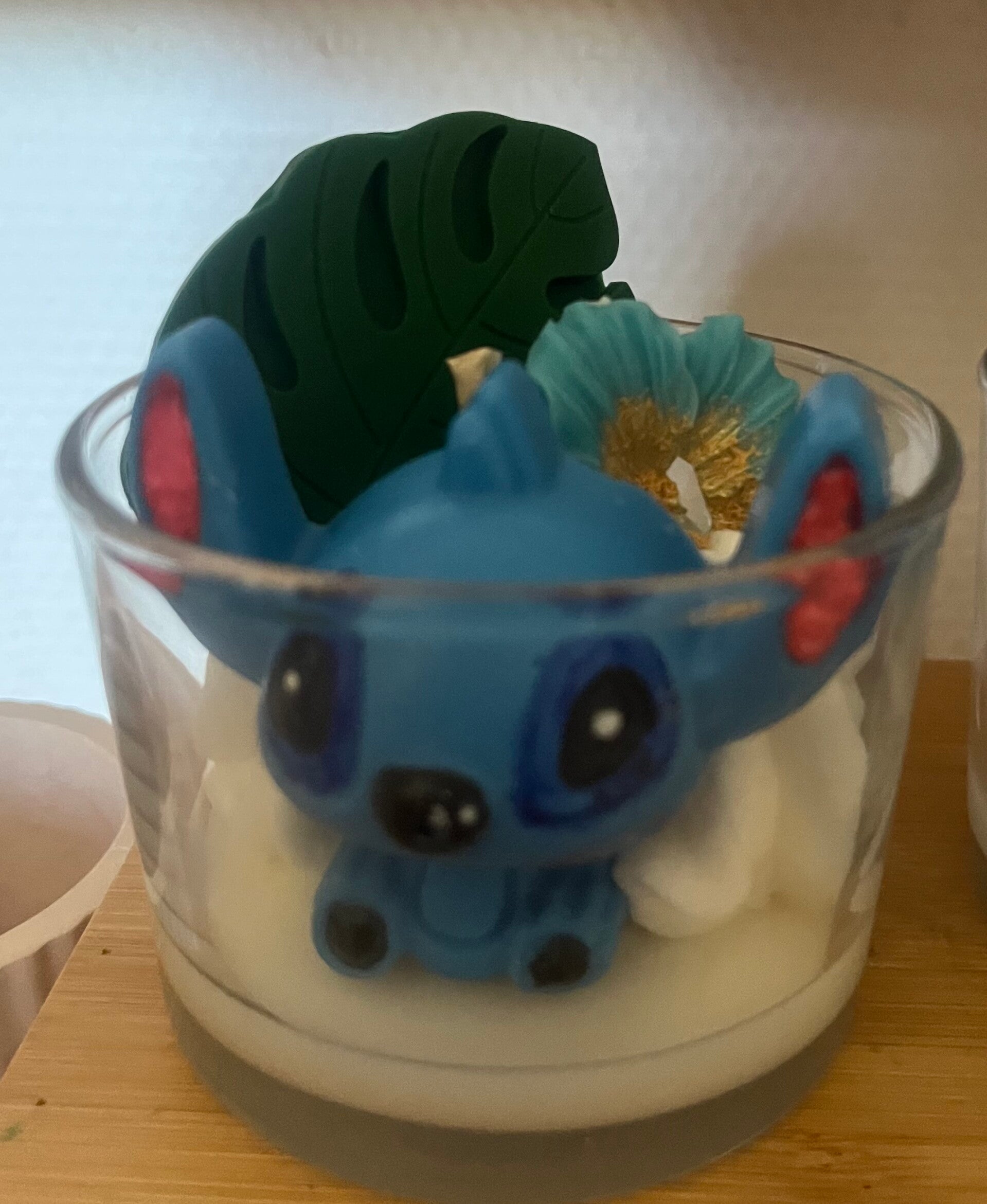Bougie gourmande avec cire 100% végétale. Chaque bougie est unique, fabriquée à la main. La cire utilisée est 100% végétale, VEGAN, sans OGM. Les parfums sont français, viennent de Grasse et sont garantis sans CMR (cancérogène, mutagène, reprotoxique), non toxique. Ingrédients (seulement des bonnes choses) : Cire de soja, parfum de Grasse, colorant naturel. Conseil d'utilisation : coupez la mèche à environ 1cm, vérifiez à ce qu'elle soit toujours centrée, laissez-là se consumer 2 heures au maximum. Photo non contractuelle. Toutes les bougies sont créés à la demande, Informations : Tenir hors de portée des enfants. En cas de consultation d'un médecin, garder à disposition le récipient ou l'étiquette. Produit non comestible.