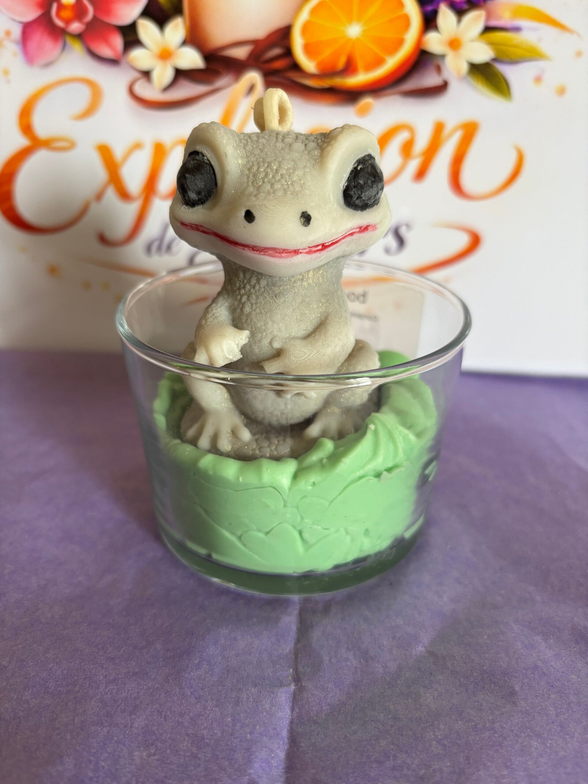Bougie gourmande avec cire 100% végétale. Chaque bougie est unique, fabriquée à la main. La cire utilisée est 100% végétale, VEGAN, sans OGM. Les parfums sont français, viennent de Grasse et sont garantis sans CMR (cancérogène, mutagène, reprotoxique), non toxique. Ingrédients (seulement des bonnes choses) : Cire de soja, parfum de Grasse, colorant naturel. Conseil d'utilisation : coupez la mèche à environ 1cm, vérifiez à ce qu'elle soit toujours centrée, laissez-là se consumer 2 heures au maximum. Photo non contractuelle. Toutes les bougies sont créés à la demande, Informations : Tenir hors de portée des enfants. En cas de consultation d'un médecin, garder à disposition le récipient ou l'étiquette. Produit non comestible.