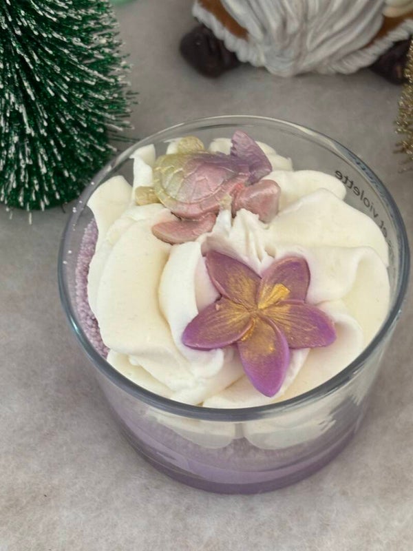 Bougie gourmande lumineuse avec cire 100% végétale. Chaque bougie est unique, fabriquée à la main. La cire utilisée est 100% végétale, VEGAN, sans OGM. Les parfums sont français, viennent de Grasse et sont garantis sans CMR (cancérogène, mutagène, reprotoxique), non toxique. Ingrédients (seulement des bonnes choses) : Cire de soja, parfum de Grasse, colorant naturel. Conseil d'utilisation : coupez la mèche à environ 1cm, vérifiez à ce qu'elle soit toujours centrée, laissez-là se consumer 2 heures au maximum. Photo non contractuelle. Toutes les bougies sont créés à la demande, Informations : Tenir hors de portée des enfants. En cas de consultation d'un médecin, garder à disposition le récipient ou l'étiquette. Produit non comestible.
