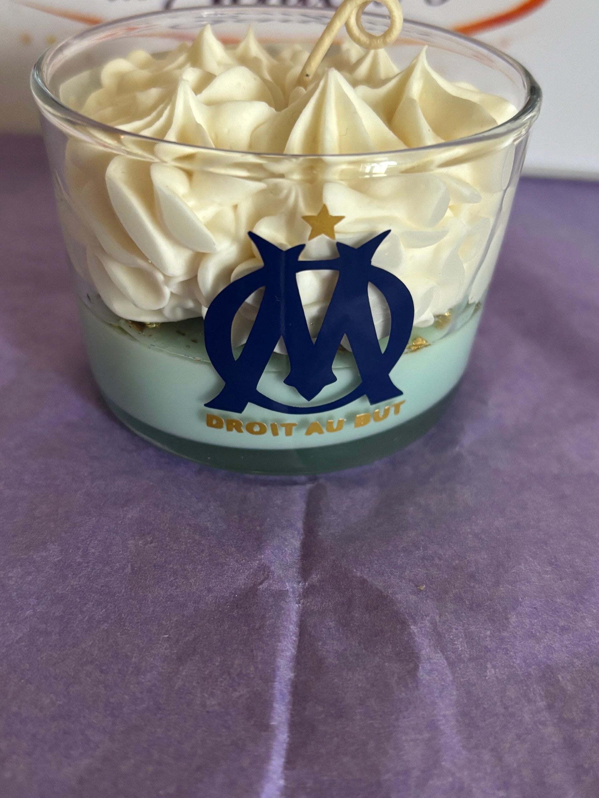 Bougie gourmande lumineuse avec cire 100% végétale. Chaque bougie est unique, fabriquée à la main. La cire utilisée est 100% végétale, VEGAN, sans OGM. Les parfums sont français, viennent de Grasse et sont garantis sans CMR (cancérogène, mutagène, reprotoxique), non toxique. Ingrédients (seulement des bonnes choses) : Cire de soja, parfum de Grasse, colorant naturel. Conseil d'utilisation : coupez la mèche à environ 1cm, vérifiez à ce qu'elle soit toujours centrée, laissez-là se consumer 2 heures au maximum. Photo non contractuelle. Toutes les bougies sont créés à la demande, Informations : Tenir hors de portée des enfants. En cas de consultation d'un médecin, garder à disposition le récipient ou l'étiquette. Produit non comestible.