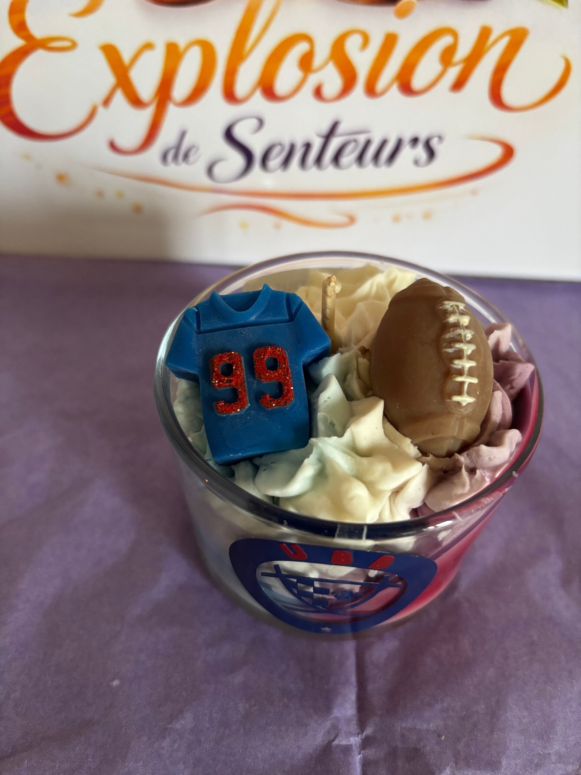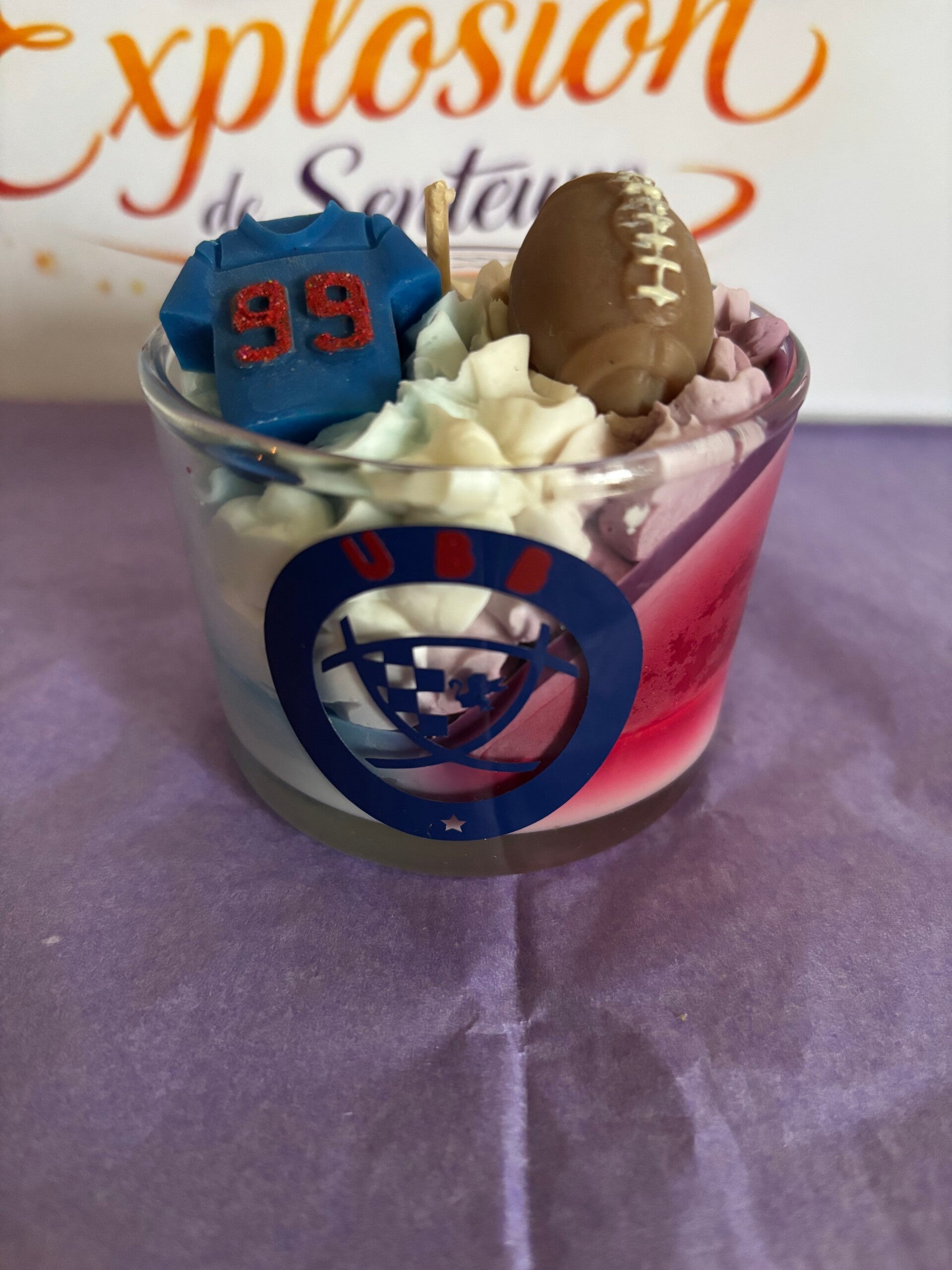 Bougie gourmande lumineuse avec cire 100% végétale. Chaque bougie est unique, fabriquée à la main. La cire utilisée est 100% végétale, VEGAN, sans OGM. Les parfums sont français, viennent de Grasse et sont garantis sans CMR (cancérogène, mutagène, reprotoxique), non toxique. Ingrédients (seulement des bonnes choses) : Cire de soja, parfum de Grasse, colorant naturel. Conseil d'utilisation : coupez la mèche à environ 1cm, vérifiez à ce qu'elle soit toujours centrée, laissez-là se consumer 2 heures au maximum. Photo non contractuelle. Toutes les bougies sont créés à la demande, Informations : Tenir hors de portée des enfants. En cas de consultation d'un médecin, garder à disposition le récipient ou l'étiquette. Produit non comestible.
