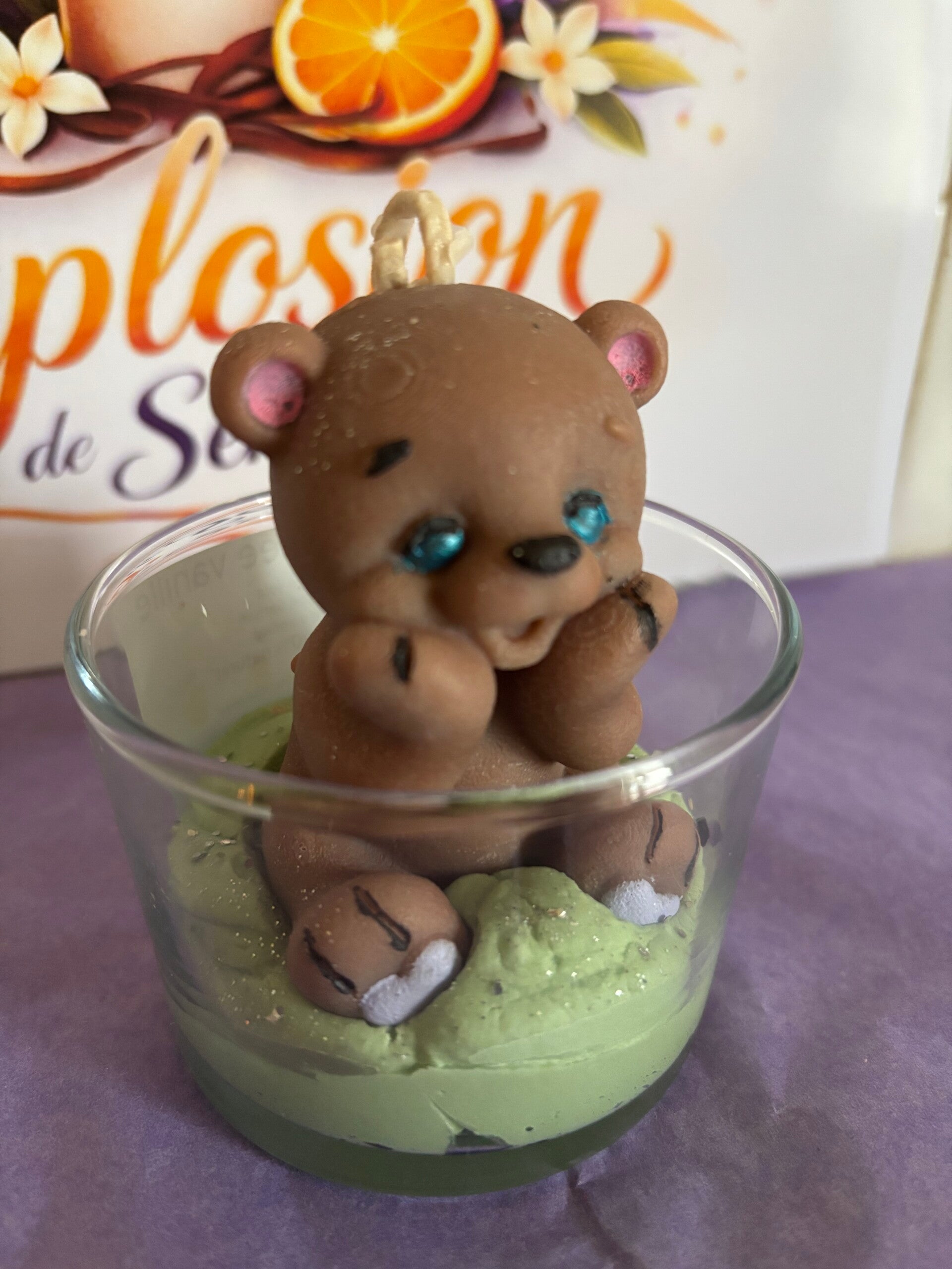 Bougie gourmande lumineuse avec cire 100% végétale. Chaque bougie est unique, fabriquée à la main. La cire utilisée est 100% végétale, VEGAN, sans OGM. Les parfums sont français, viennent de Grasse et sont garantis sans CMR (cancérogène, mutagène, reprotoxique), non toxique. Ingrédients (seulement des bonnes choses) : Cire de soja, parfum de Grasse, colorant naturel. Conseil d'utilisation : coupez la mèche à environ 1cm, vérifiez à ce qu'elle soit toujours centrée, laissez-là se consumer 2 heures au maximum. Photo non contractuelle. Toutes les bougies sont créés à la demande, Informations : Tenir hors de portée des enfants. En cas de consultation d'un médecin, garder à disposition le récipient ou l'étiquette. Produit non comestible.