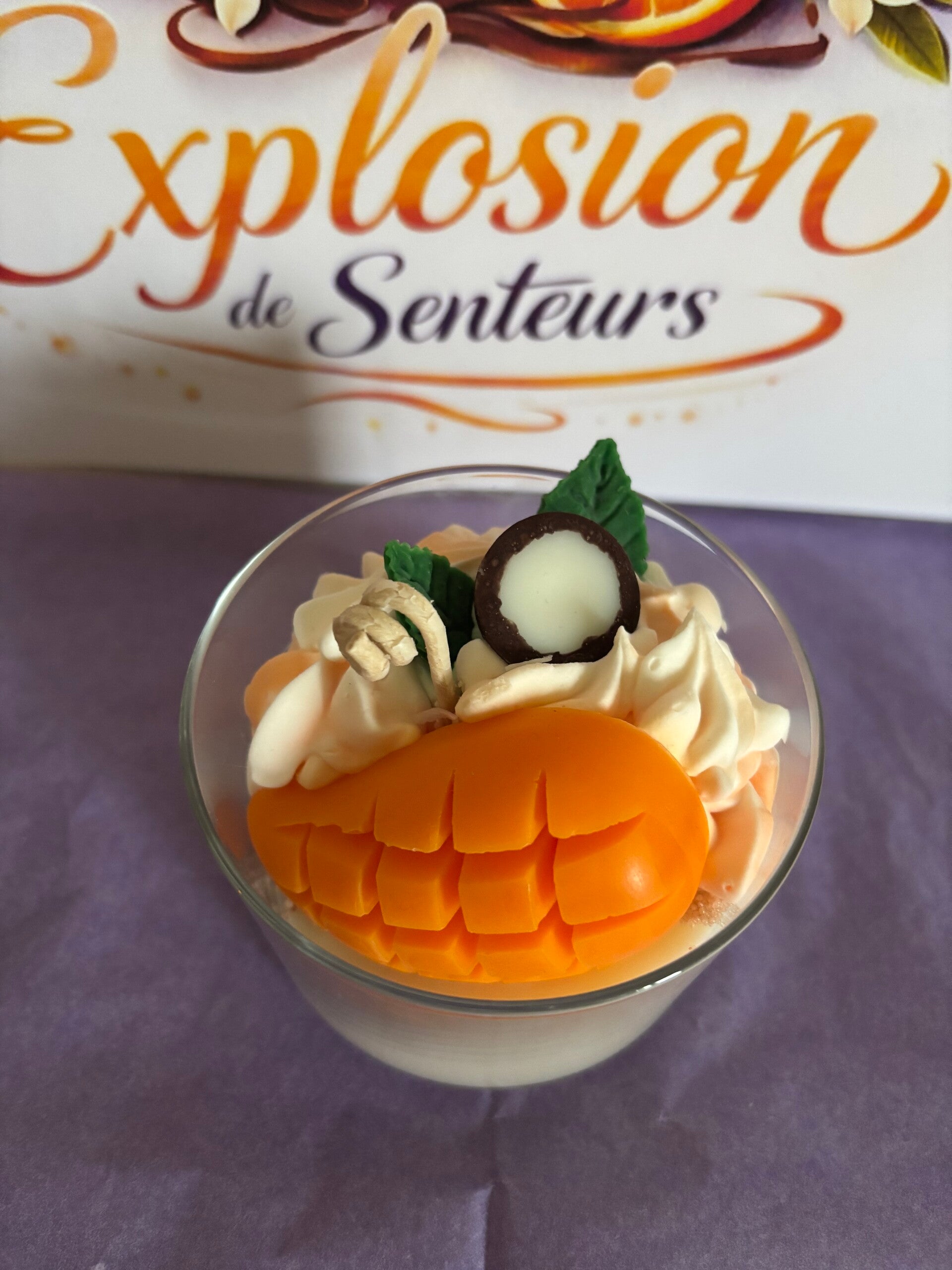 Bougie gourmande lumineuse avec cire 100% végétale. Chaque bougie est unique, fabriquée à la main. La cire utilisée est 100% végétale, VEGAN, sans OGM. Les parfums sont français, viennent de Grasse et sont garantis sans CMR (cancérogène, mutagène, reprotoxique), non toxique. Ingrédients (seulement des bonnes choses) : Cire de soja, parfum de Grasse, colorant naturel. Conseil d'utilisation : coupez la mèche à environ 1cm, vérifiez à ce qu'elle soit toujours centrée, laissez-là se consumer 2 heures au maximum. Photo non contractuelle. Toutes les bougies sont créés à la demande, Informations : Tenir hors de portée des enfants. En cas de consultation d'un médecin, garder à disposition le récipient ou l'étiquette. Produit non comestible.
